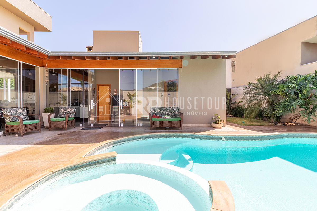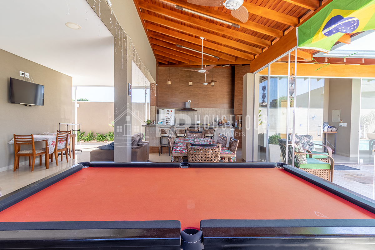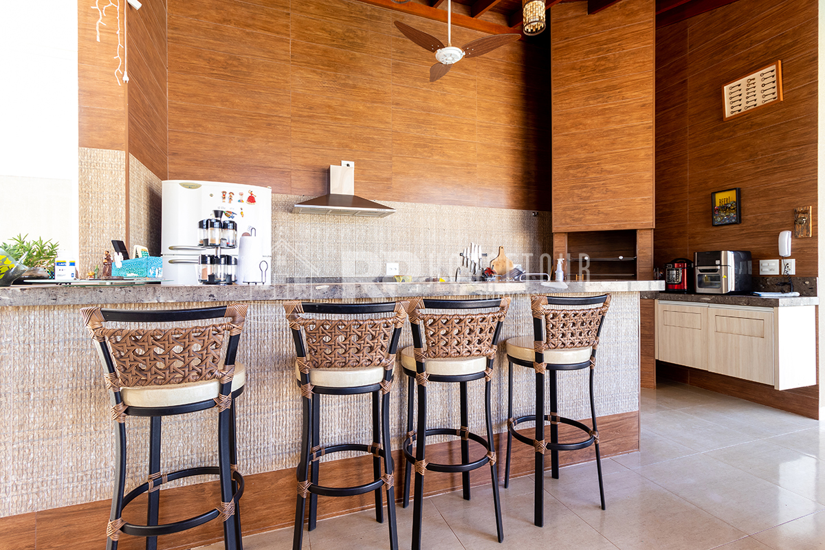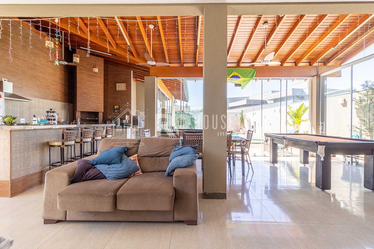 - Área gourmet fechada com portas de vidro, churrasqueira, pia, cooktop e armários (80m²)